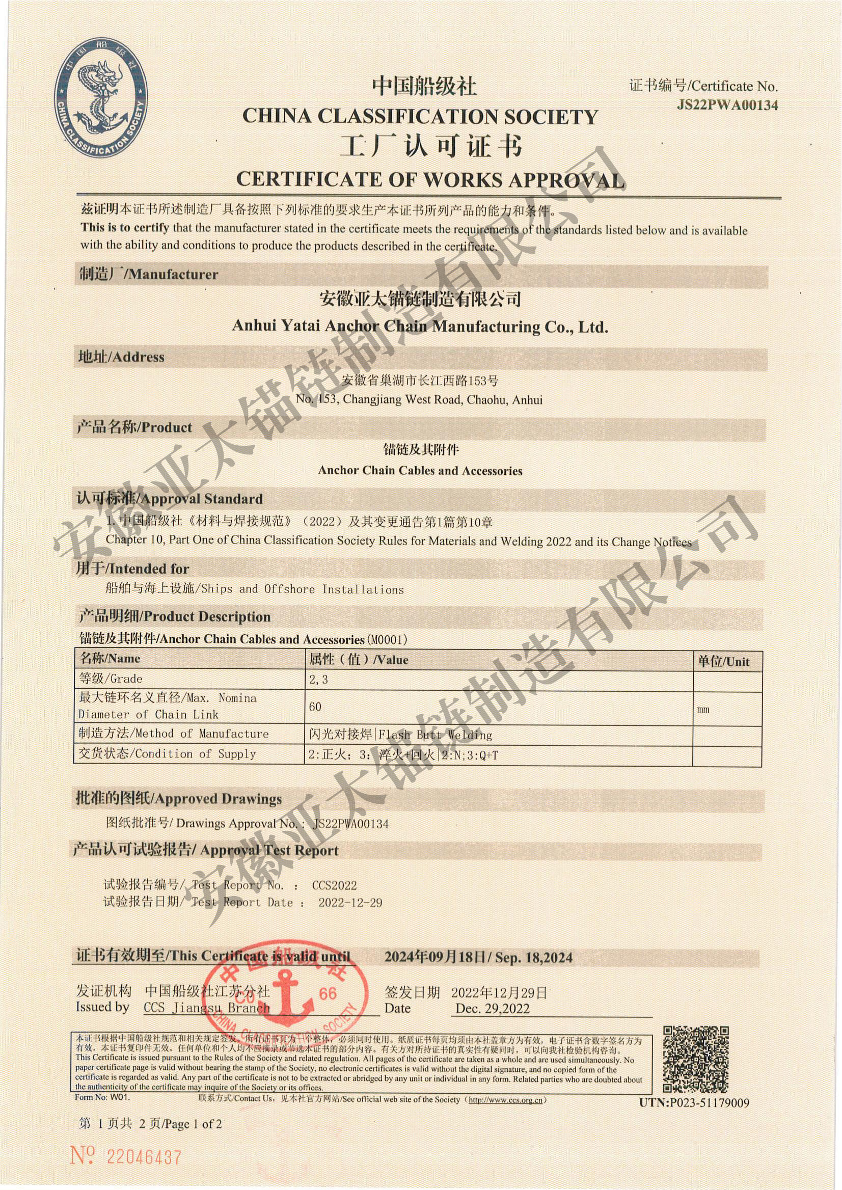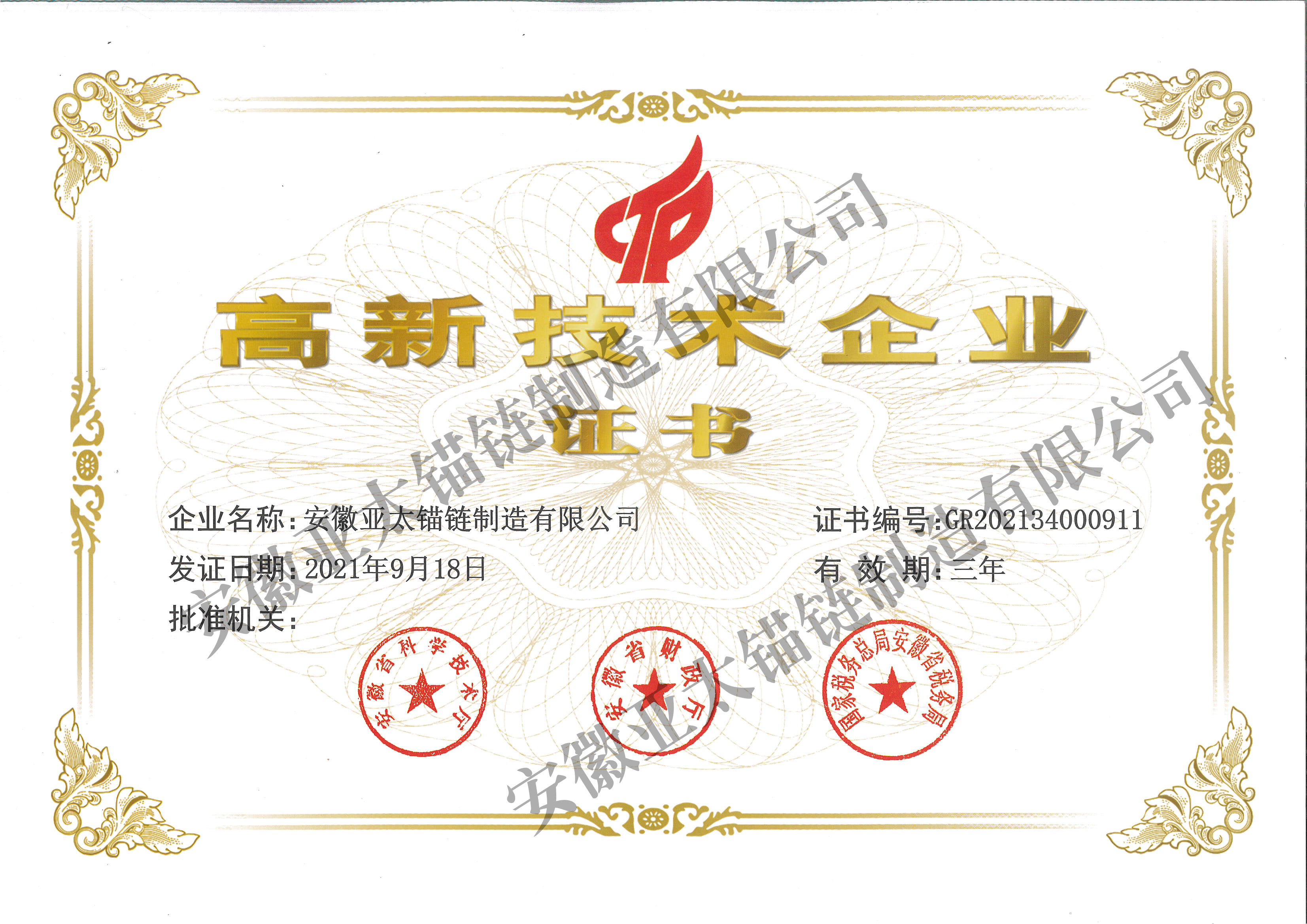 安徽亞太錨鏈制造有限公司是國家高新技術(shù)企業(yè),也是國家GB/T 549-2017《電焊錨鏈》標(biāo)準(zhǔn)的起草和制定單位之一。公司旗下設(shè)有錨鏈分廠、浮標(biāo)分廠、舾裝件分廠等多個(gè)分廠。公司專業(yè)從事φ12.5mm-φ107mm二、三級船用錨鏈、浮標(biāo)錨鏈、錨鏈附件,錨、船舶曬裝產(chǎn)品、航標(biāo)、系船浮、船型標(biāo)、多種規(guī)格海洋監(jiān)測浮標(biāo)及航標(biāo)燈等產(chǎn)品的生產(chǎn)、安裝和服務(wù)。目前公司的產(chǎn)品銷往全國各地船廠、碼頭、航標(biāo)處、航道局、海洋局,并已走上國際市場,如東南亞、中東、歐美等國家。